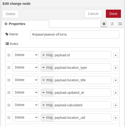 Під-потік нормалізації видаляє зайві поля такі як: id, location_type, location_title, updated_at, calculated, location_uid.