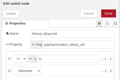 Використовує switch компонент, керуючись значенням з поля payload.location_oblast_uid в даному випадку Закарпатська область повинна мати значення 11, інакше виняток.